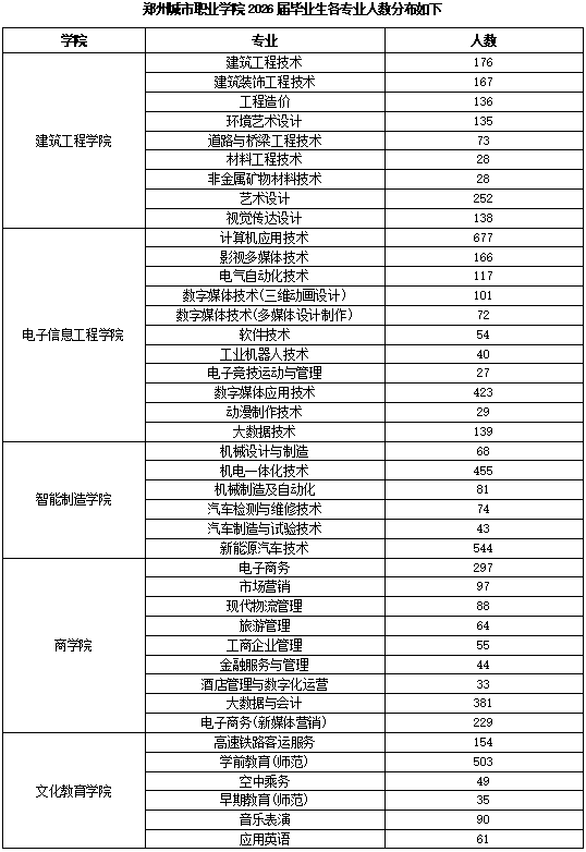 学校现有全日制在校生18000余人,设有电子信息工程学院、建筑工程学院、智能制造学院、文化教育学院、商学院、等5个教学单位,开办有建筑工程技术、计算机应用技术、机电一体化技术、学前教育、空中乘务等40个专业及方向。