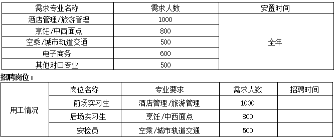 | 岗位名称 | 专业要求 | 需要人数 | 男女比例 | 招聘时间 |