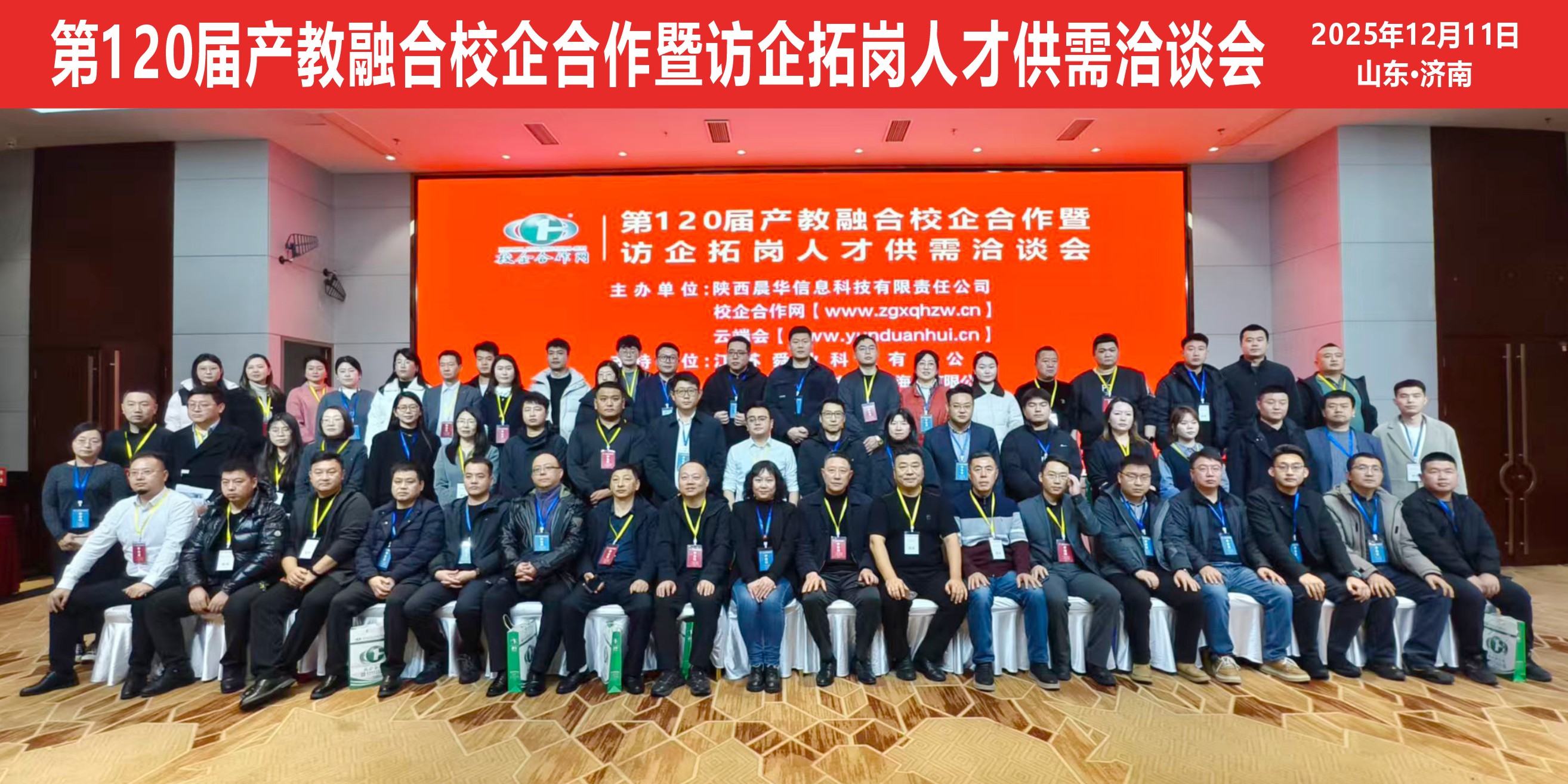 2025年12月11日,由我方主办的“第120届产教融合校企合作暨访企拓岗人才供需洽谈会”在山东济南隆重召开并取得圆满成功。本次大会以“畅通合作渠道 赋能校企发展”为主题,旨在搭建高效、精准的对接平台,深化产教融合,促进教育链、人才链与产业链、创新链的有机衔接。