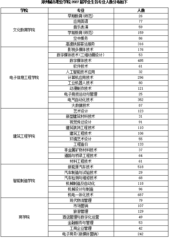学校现有全日制在校生18000余人,设有电子信息工程学院、建筑工程学院、智能制造学院、文化教育学院、商学院、等5个教学单位,开办有建筑工程技术、计算机应用技术、机电一体化技术、学前教育、空中乘务等40个专业及方向。