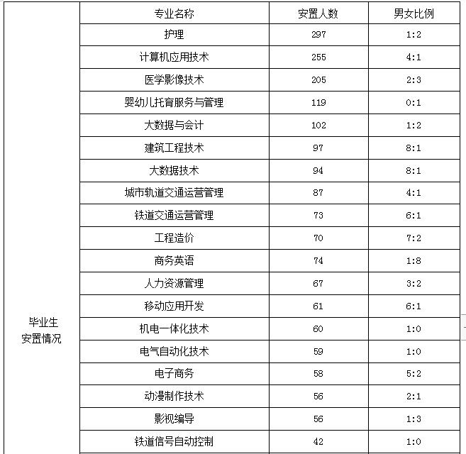 专业名称 安置或实习人数 男女比例 安置或实习时间