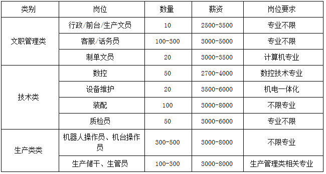 | 普工 | 不限 | 不限 | 不限 | 常年 |
