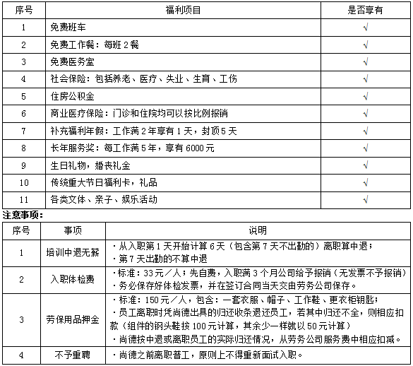 公司提供富有竞争力的薪酬和福利。普工平均月收入(做5休1,12小时运转班)3800-4000元