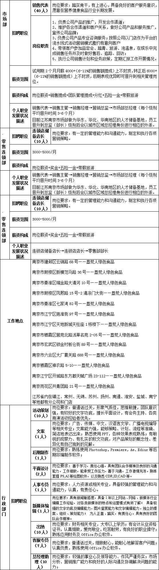 | 销售代表 | 不限 | 40人 | 7/3 | 长期 |