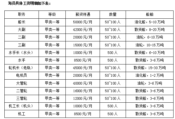 轮机长(老轨) 50~100人 1:0 全年