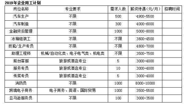 | 汽车制造 | 机电一体化、机械、汽车等 | 1000 | 男 | 常年 |