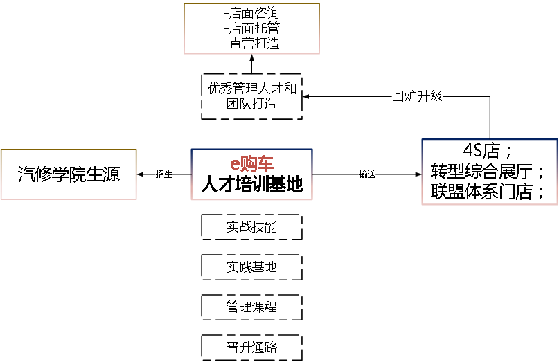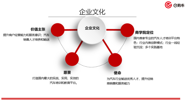 (5)其中,e购车商学院也致力于打造汽车人才培训基地,为行业培训优秀的销售顾问和管理团队,通过铸人为行业创造价值。