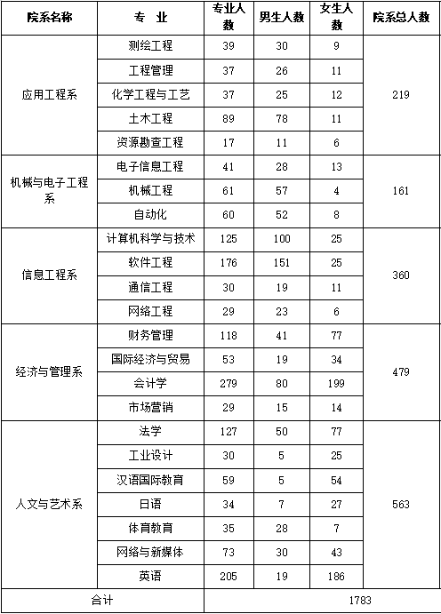 东华理工大学长江学院目前在校学生5300余人,现有本科专业23个,综合排名列全国独立学院百强。学院在江西省普通高校本科专业综合评价中,会计学、财务管理、汉语国际教育等专业荣获全省13所独立学院排名第一;英语、机械工程、电子信息工程、自动化等专业排名第二;市场营销排名第三;法学、日语、计算机科学与技术专业排名第四的优异成绩;工业设计专业为长江学院特色专业,注重校企产教融合,与全国品牌服装企业和全国十佳服装设计师共同搭建服装实践教学平台。