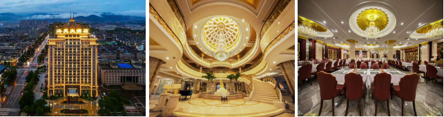 酒店简介:海天宝来酒店是由浙江省百强企业之一的浙江海天建设集团按五星级标准投资3亿元兴建,由东阳市宝来酒店管理有限公司管理,集住宿、餐饮、娱乐、会议、商务为一体的豪华商务酒店。酒店位于浙江省东阳市江北新区,毗邻市政府大楼,邻近检察院、财政局等政府机关,位置优越。酒店周围设施齐全,大润发超市,特色美食一条街近在咫尺,让您生活、会议、购物、休闲娱乐享受尽在其中,是您商务旅游的上佳之选。