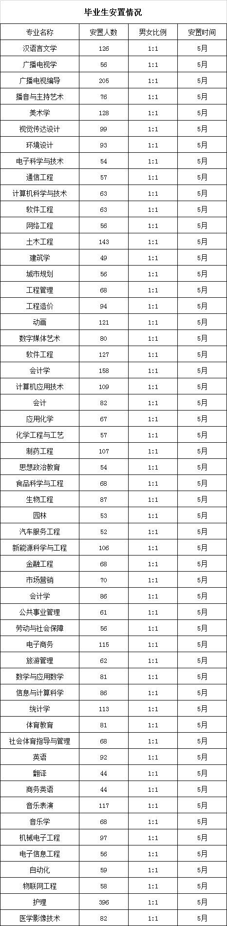| 专业名称 | 安置或实习人数 | 男女比例 | 安置或实习时间 |