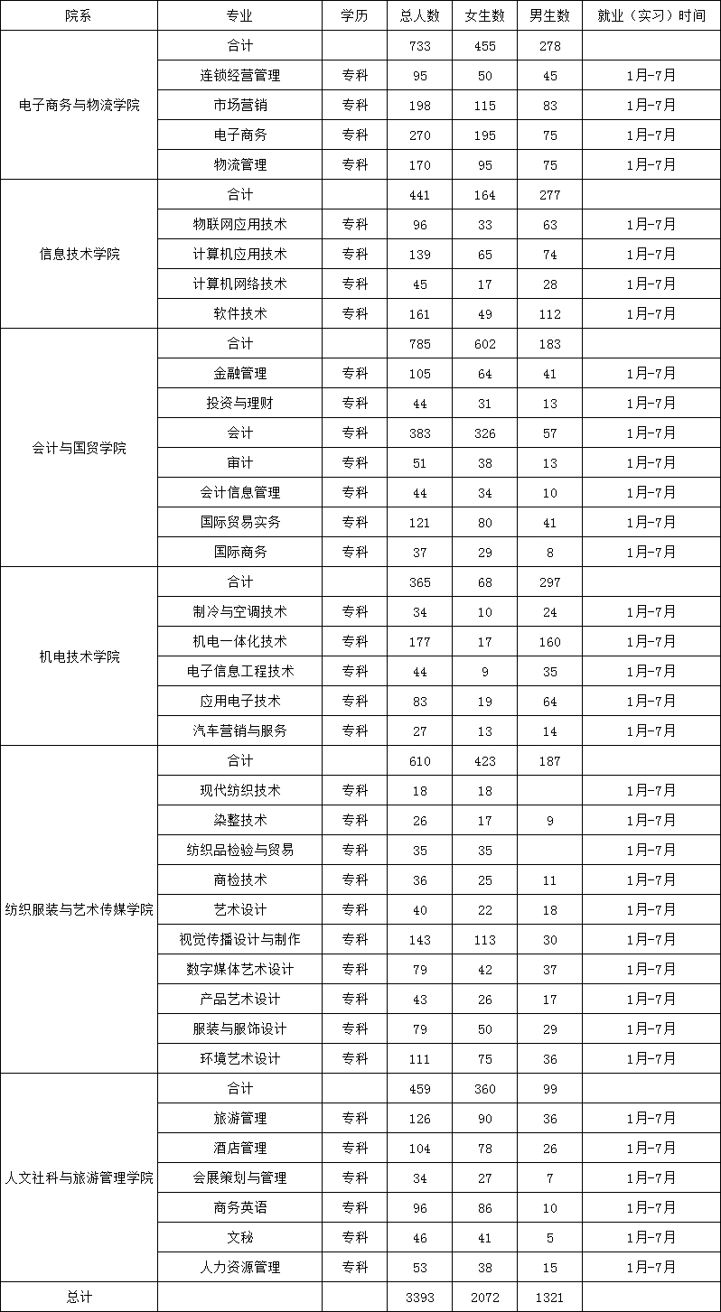 | 专业名称 | 安置或实习人数 | 男女比例 | 安置或实习时间 |