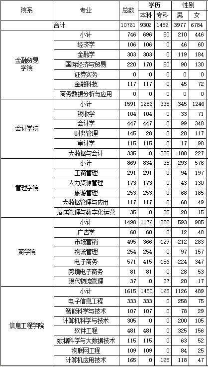 专业名称 安置或实习人数 男女比例 安置或实习时间