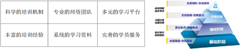 金程教育聚集了金融培训行业骨干力量,对国内外各大金融机构及培训咨询方式进行研究,在金融培训领域创造了独特的教学培训模式。在证书体系方面,金程打造了“3+2金字塔式”教学模式,提高学习效率;在考研辅导方面,金程考研成功构建模范“5+2+3”(5大阶段+2轮模考+3师督学)教学模式;在内训体系方面,金程拥有对金融机构整体培训体系搭建的独特见解,也为国内外诸多金融机构带去了实战落地的培养模式。