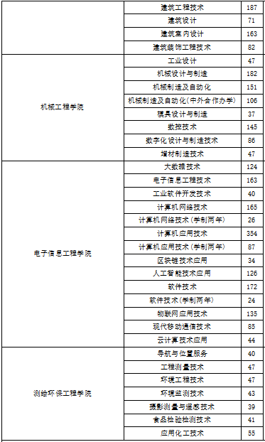 学校设置有10个专业群62个专业。现有国家级高水平专业群1个,中央财政支持的“高等职业学校提升专业服务产业发展能力项目”建设专业2个,国家骨干高职院校重点建设专业5个,教育部首批现代学徒制试点专业5个,创新发展行动计划国家骨干专业6个,河南省示范性专业、特色专业等24个。