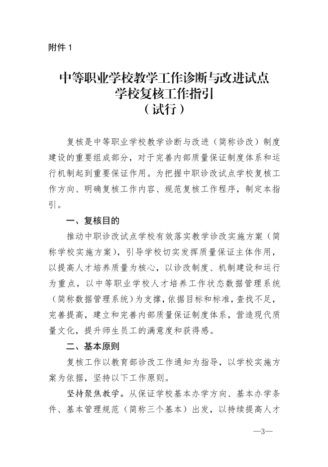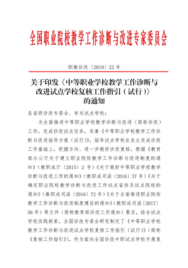 《中等职业学校教学工作诊断与改进试点学校复核工作指引(试行)》