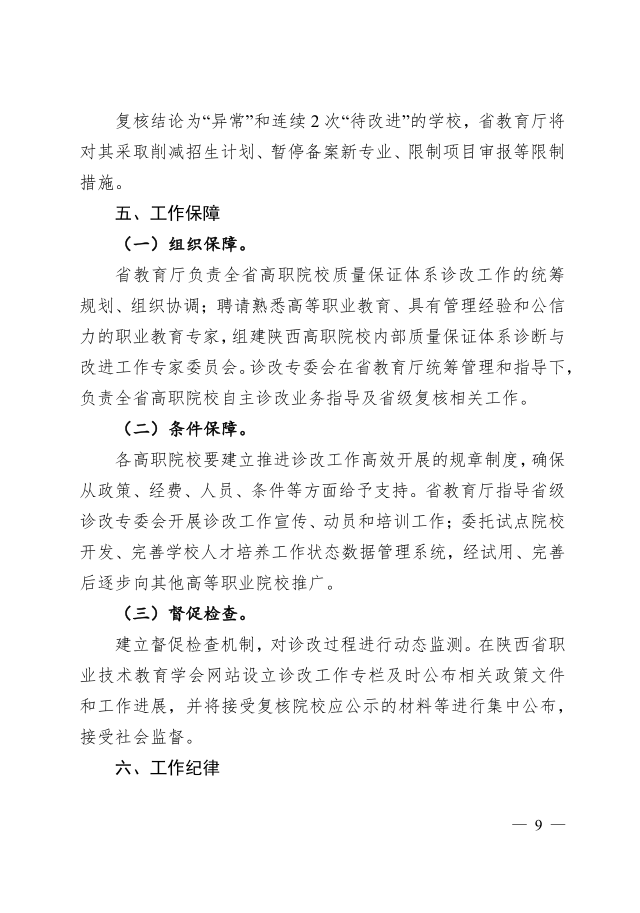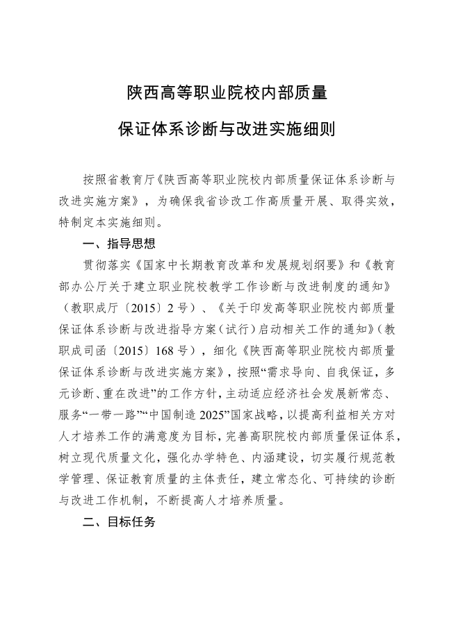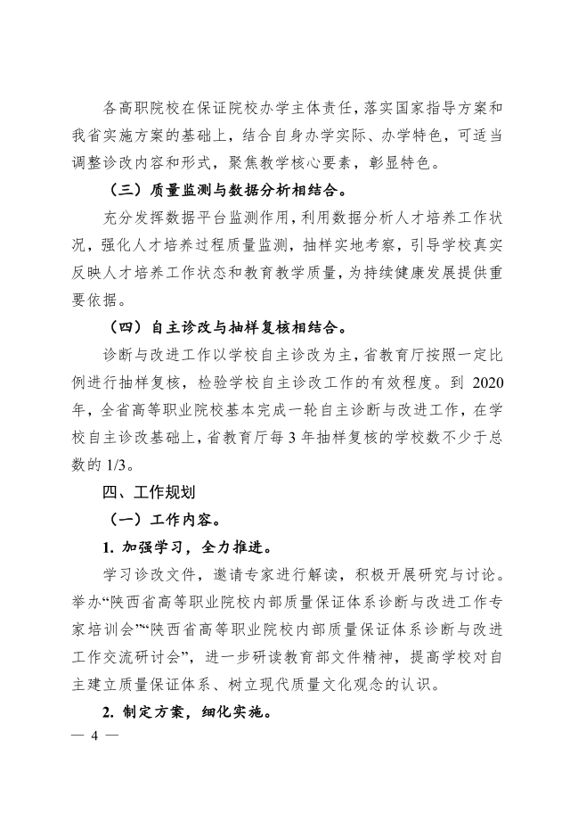 陕西省高等职业学校教学工作诊断与改进实施方案