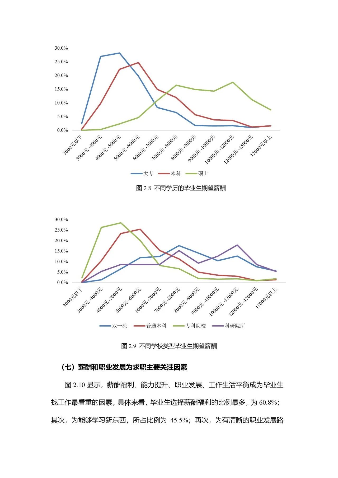 报告显示,受疫情冲击,毕业生的期望行业、岗位、工作地点等发生改变,大学生平均期望薪酬约6930元,而薪酬福利、职业发展和工作生活平衡是大学生求职主要关注因素。