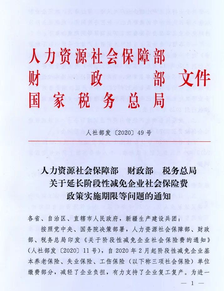 关于延长阶段性减免企业社会保险费政策实施期限等问题的通知