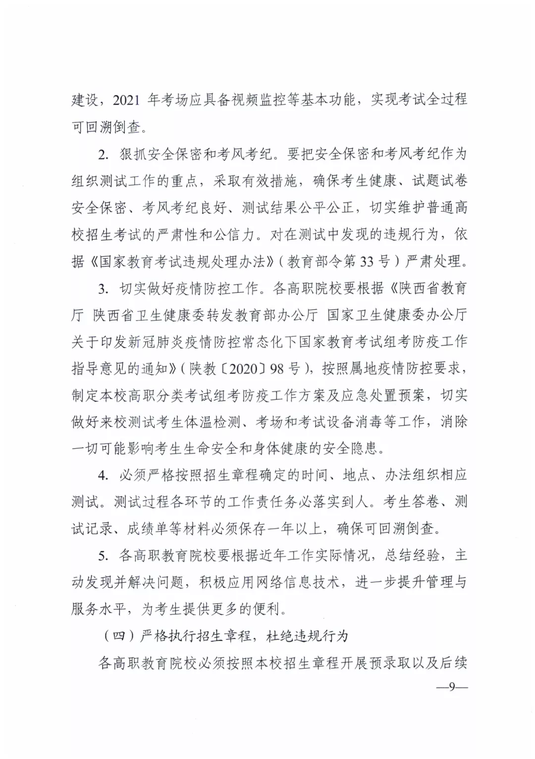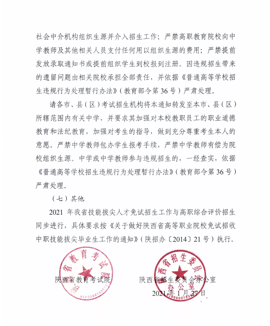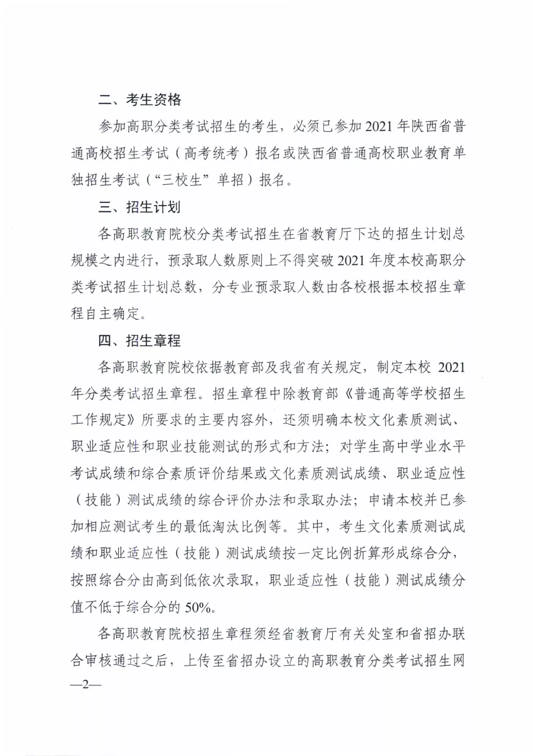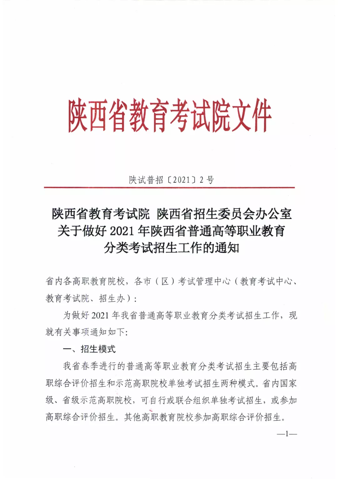 关于做好2021年陕西省普通高等职业教育分类考试招生工作的通知