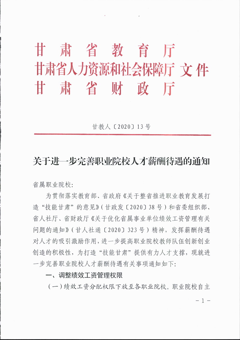 教育部办公厅转发甘肃省《关于进一步完善职业院校人才薪酬待遇的通知》的通知 |