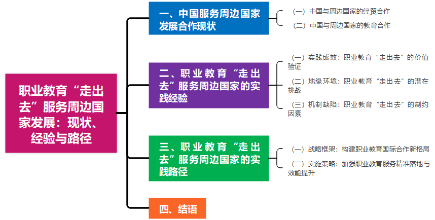 中国高度重视与周边国家友好合作,秉持人类命运共同体理念,不断深化睦邻友好关系,推动区域协同发展。随着中国综合国力的持续提升,周边外交的国际影响力和塑造力显著增强,成为中国特色大国外交的重要支撑。新时代以来,教育高水平对外开放成为国家对外开放战略的核心维度之一,职业教育“走出去”因兼具“技能输出”与“民生赋能”双重属性,成为中国与周边国家深化务实合作、共享发展机遇的重要纽带。一方面,中国已建成世界上规模最大的职业教育体系,技术技能人才培养能力与产业适配经验持续积累,为“走出去”提供坚实基础。另一方面,近年来,中国与东盟、中亚、南亚的贸易额均保持高位增长,制造业、能源电力、金属矿业等领域的产能合作对本土化技能人才产生迫切需求,为职教“走出去”创造现实条件。职业教育“走出去”服务周边国家发展,将自身发展机遇与周边国家共享,不仅能够促进区域合作与稳定,更为构建人类命运共同体提供了重要实践平台。 然而,职业教育“走出去”在服务周边国家过程中,尚未形成成熟的实践范式,制约了服务效能的提升。如何立足中国与周边国家的合作基础,明确职教“走出去”的战略布局,破解实践中的风险与机制缺陷,实现服务精准落地,成为推动职教国际化高质量发展、助力“一带一路”建设的关键问题。