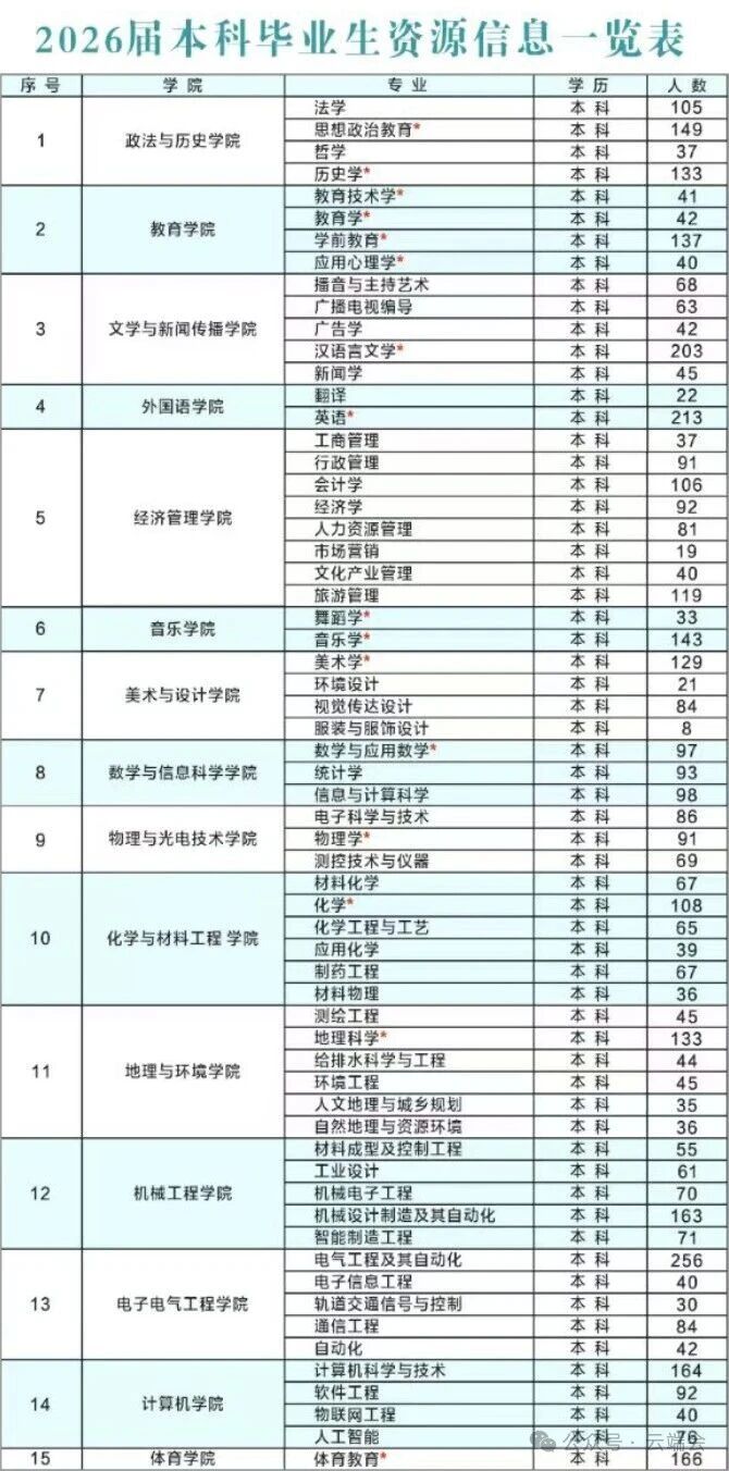 学校现有1个国家级特色专业;5个专业被确定为国家级一流专业建设点,11个专业被确定为省级一流专业建设点;有3个省级名牌专业、5个省级特色专业、4个省级综合改革试点专业;2个专业通过师范类专业认证中学教育二级认证。有29门国家级和省级一流本科课程、3门省级特色线上课程。有1个国家语言文字推广基地;有6个省级实验教学示范中心、2个省级虚拟仿真实验教学中心、7个省级高校人才培养模式创新实验区、1个陕西省中华经典诵写讲基地、1个陕西省中华优秀传统文化传承基地、1个陕西省大中小学劳动教育实践基地。 学校现有中国语言文学、化学、地理学、数学、哲学、物理学、教育学、马克思主义理论、机械工程9个一级学科学术型硕士学位授权点和教育、机械、旅游管理、美术与书法、戏剧与影视、体育、翻译、电子信息、资源与环境、会计、材料与化工、音乐12个专业硕士学位授权点,涵盖66个二级学科方向(领域)。有1个省级一流学科、6个省级重点学科;有3个省级重点实验室、5个省级哲学社会科学重点研究基地、2个省级社科普及基地、1个省级科普教育基地、1个省级科普研究中心、1个省级高校工程研究中心、1个省级众创空间。 学校2026届毕业学生5365人,其中本科5007人,硕士358人。本科毕业生中师范类毕业生1859名(其中优师计划毕业生117人),占37.13%,非师范类毕业生3148名,占62.87%;硕士毕业生中师范类毕业生14名,占3.91%,非师范类毕业生344名,占96.09%;男生2315名,占43.15%,女生3050名,占56.85%。2026届本科毕业生分布在全校15个学院的62个本科专业,来自全国31个省、市、自治区。 二、招聘会时间 2026年4月10日(周五8:30-18:00) 三、组织机构 主办单位: 宝鸡文理学院 宝鸡市人力资源和社会保障局 承办单位: 宝鸡文理学院就业指导服务中心 陕西中人人力资源有限公司 四、招聘会地点 宝鸡文理学院高新校区图书馆南广场