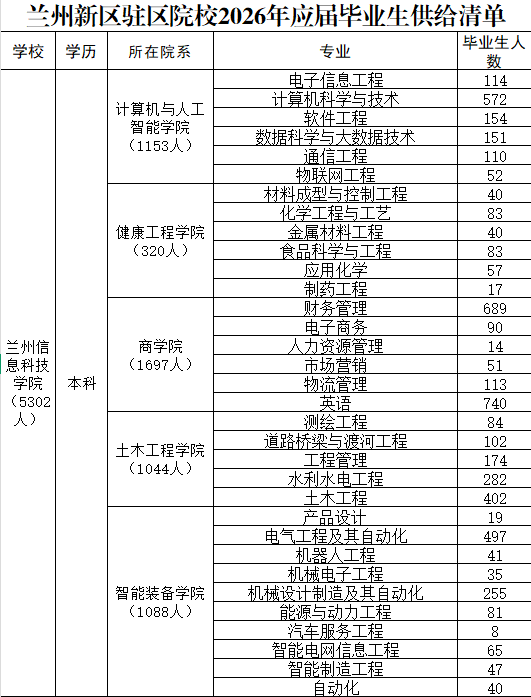为全面落实党中央、国务院、省教育厅关于做好高校毕业生就业工作的决策部署,进一步搭建用人单位和毕业生双向选择平台,实现我校2026届毕业生高质量和充分就业,兹定于2026年3月15日至3月31日举办“兰州信息科技学院2026年春季“职通未来”线上双选会”,诚邀贵单位报名参加,广纳贤才!具体安排如下: