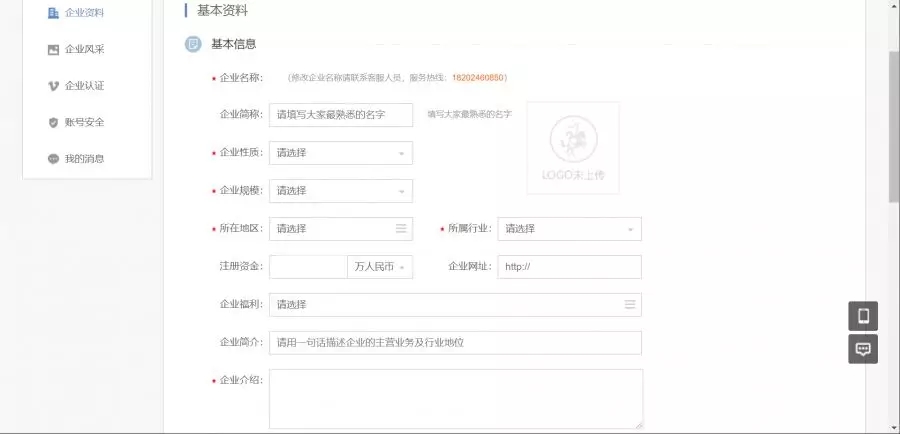根据实际情况填写完善企业资料