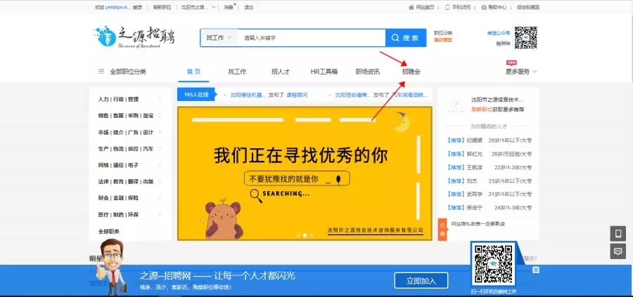 在网站首页点击招聘会即可进入招聘会