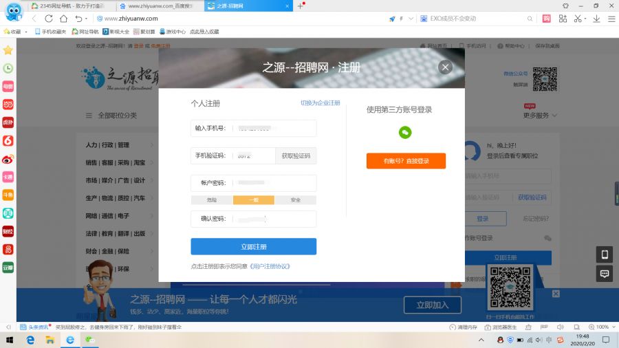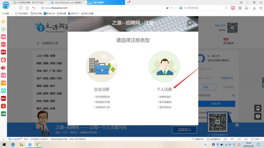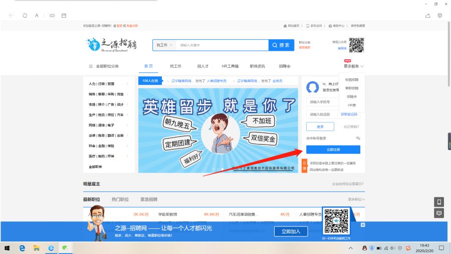 登录之源招聘网站(www.zhiyuanw.com)打开后点击立即注册