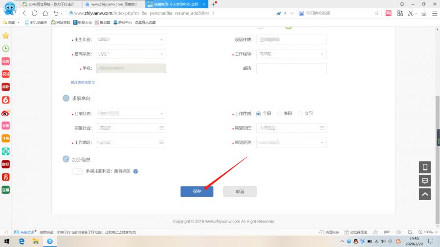 填写简历后点击保存即可保存简历